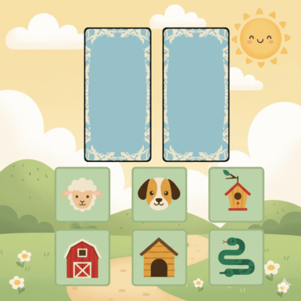 על לוח המשחק מופיעים קלפים. על השחקנים למצוא זוגות תואמים של קלפים.